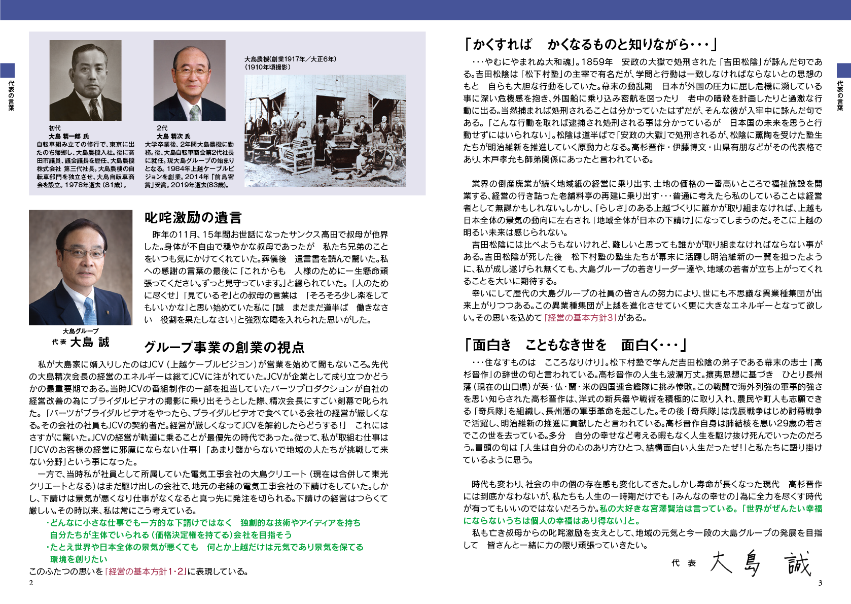 2026年大島グループの方針 「PDFを表示する」 |